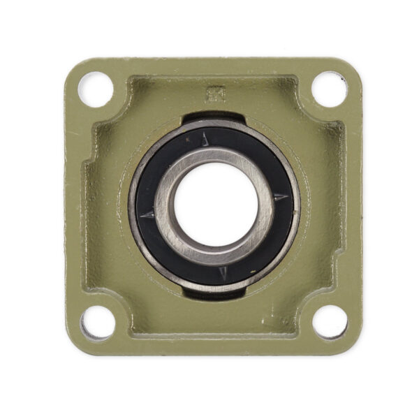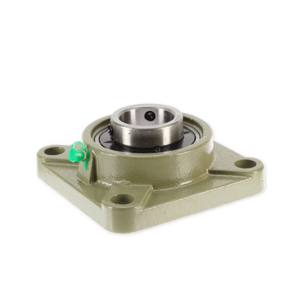 Dzięki funkcji samonastawnej łożysko UCF 207 potrafi kompensować niewielkie odchylenia osi wału. Minimalizuje to ryzyko uszkodzeń i wydłuża czas bezawaryjnej pracy całej maszyny. Całość znajduje się w wytrzymałej, kwadratowej oprawie o wymiarach 17x17 cm. Cztery otwory montażowe rozmieszczone symetrycznie w rogach oprawy umożliwiają łatwe i stabilne przytwierdzenie zespołu do konstrukcji maszyny. Montaż odbywa się przez śruby M12.
