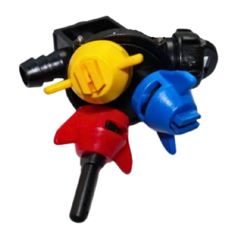 Oprawa rozpylacza potrójna z końcówką dyszy RSM. Jest to nowoczesny oraz niezawodny element systemu opryskowego. Został zaprojektowany z myślą o maksymalnej efektywności pracy w gospodarstwie rolnym. Przemyślana budowa głowicy umożliwia równomierne rozprowadzanie cieczy roboczej, a także szybki wybór dysz i pełną kontrolę podczas procesu oprysku.