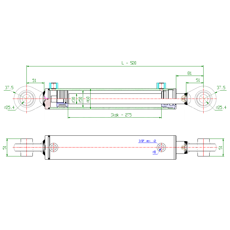 - Długość siłownika w stanie spoczynku: 520 mm